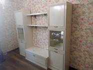 - В гостиной есть вся необходимая мебель для хранения: два напольных шкафа, тумба с выдвижным ящиком и две вместительные полки. Для самого важного всегда найдется место;